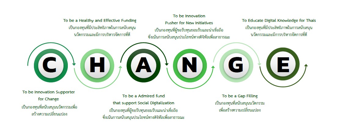 “เป็นกองทุนชั้นนำในการผลักดันและเพิ่มขีดความสามารถ การพัฒนาเศรษฐกิจและสังคมไทยด้วยเทคโนโลยีดิจิทัล”